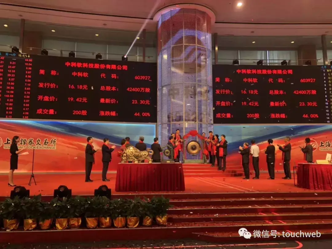 中科软开盘价为19.42元,随后上涨至23.3元,涨幅为44%,市值98.8亿元。