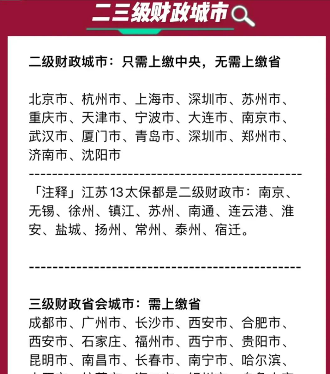 比如,二级财政城市不需要向省级财政上缴税款,这就让这些城市的财政上有了更多的自主权。