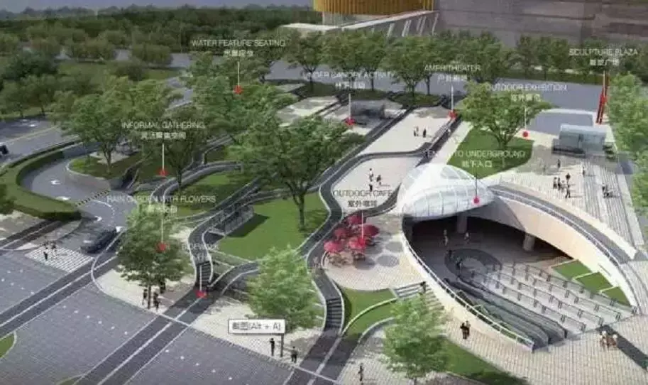 还有约1100米风雨连廊贯穿整座城,