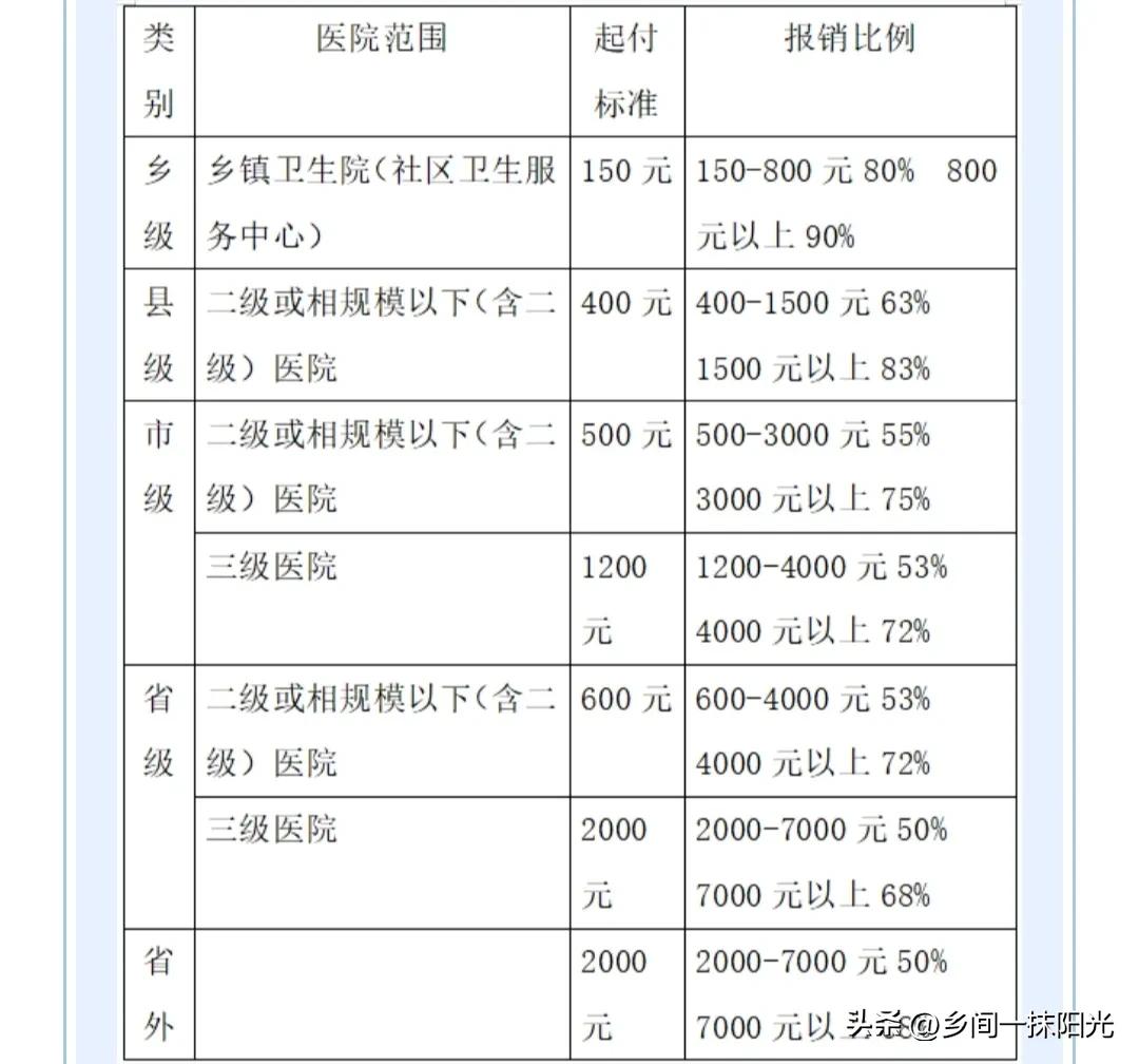 参考我们当地的一些医保报销方案,其它地方因为政策的不同,报销比例差别还是非常大的。在本地参保的,去乡镇卫生院住院报销比例是最高的,而且起付线非常低,主要考虑农村本地人平常看病,取药方便。