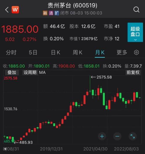 截至8月3日盘后,贵州茅台股价报1885元/股,最新总市值23679亿元。