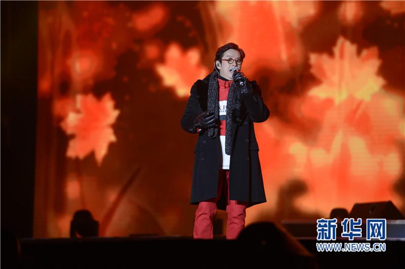 歌手谭咏麟在晚会现场演唱,将晚会推向高潮。