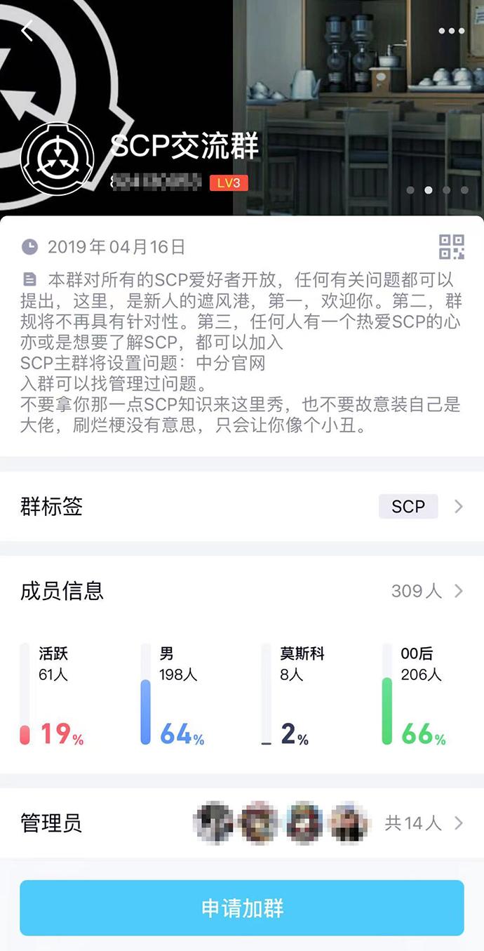 一个“SCP基金会”交流群资料显示,群内半数以上成员为“00后”。