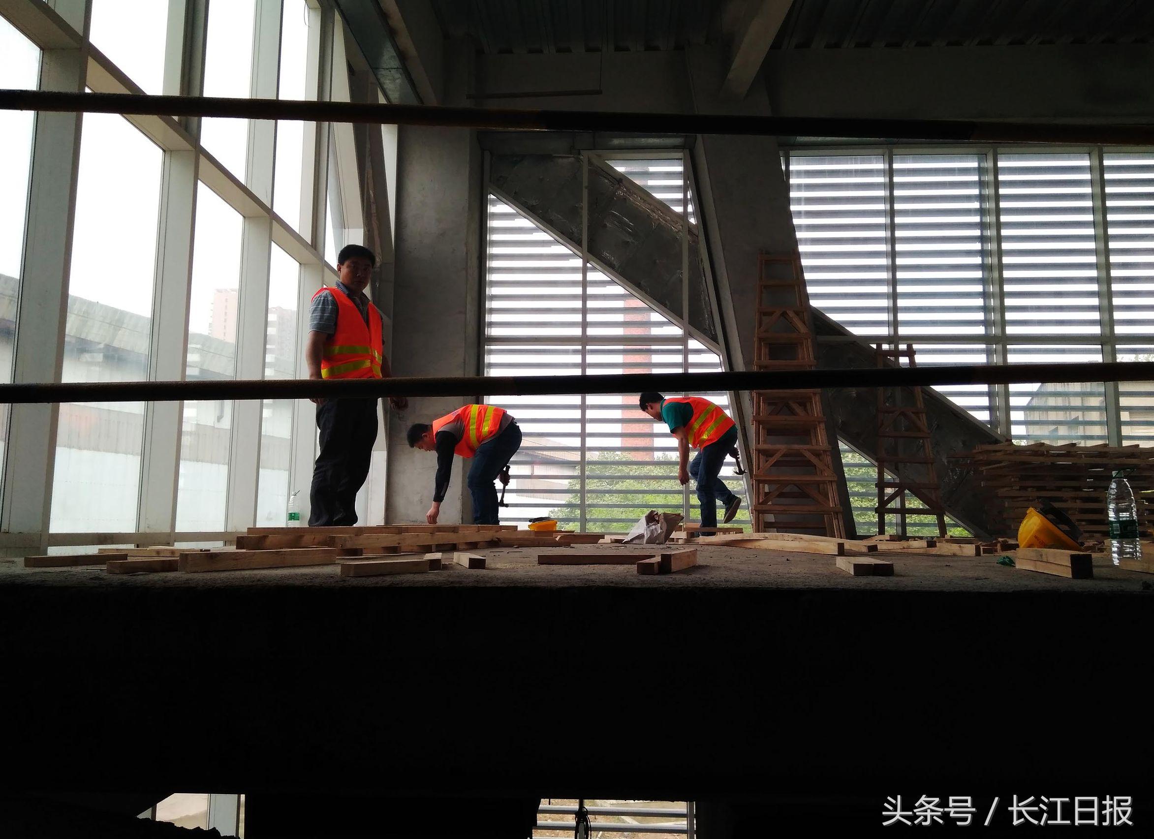武汉奇盛消防公司邓师傅介绍,他们是两天前进场,所有施工设计都是按几年前的规划图纸进行,这次工期很紧,整个消防工程要6月份前完工。