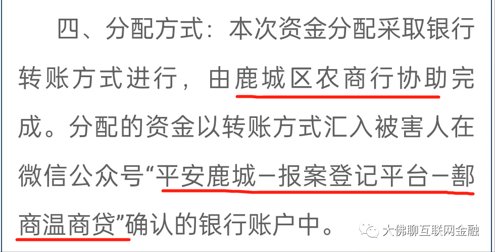 这次退赔的范围是在“平安鹿城-报案登记平台-鄯商温商贷”核对无误的被害人,包含了“中亚丰基金”。