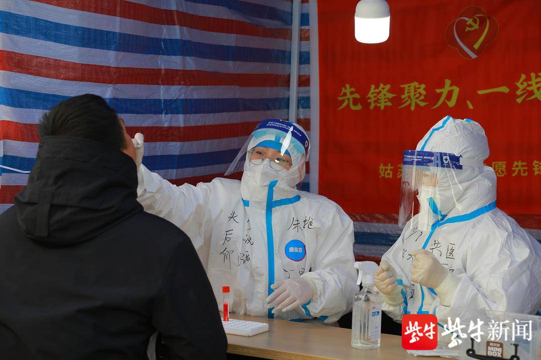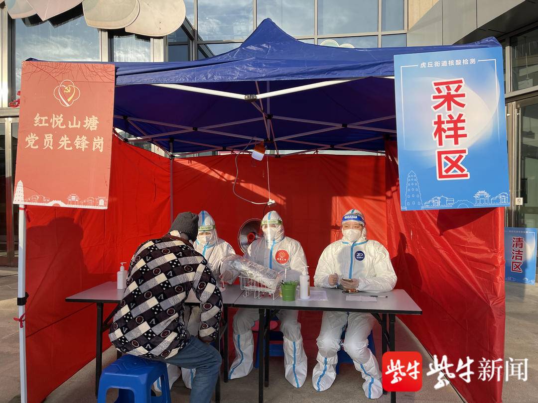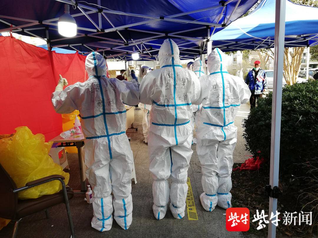 在虎丘街道山塘社区核酸检测采样点,有4名来自扬州市江都中医院的驰援医生,他们经历过扬州的疫情防控,对核酸检测采样工作有着丰富的经验。核酸检测采样前,他们面对面向社区工作人员传授“经验”,大到信息采集工作、穿脱防护服步骤,小到佩戴手套需做到先普通乳胶手套后外科手套等,事无巨细进行指导,让大家有条不紊地做好自己的分工,保证核酸采样工作高效开展。