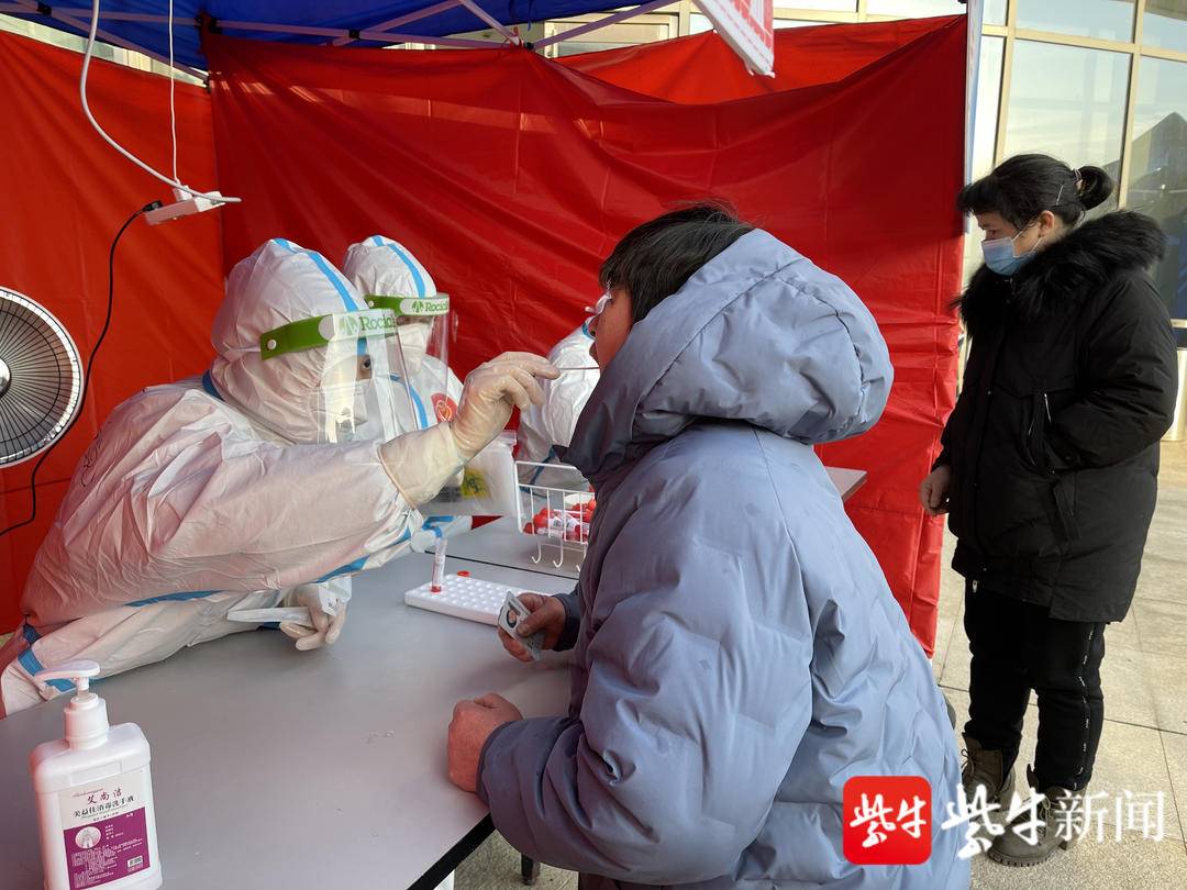 淮安第三人民医院援苏医疗队队长牟甜甜介绍,“在了解在册市民、采集点设置等情况后,我们采取以老带新的方式进行分组,保证各组力量均衡。”每采集完一个核酸样本,医护人员们戴着薄膜手套的手都要用消毒液进行消毒,这也会进一步降低手部的温度,不少人的手指已经冻得僵硬。 牟甜甜介绍,一上午四个小时,平均每名医护人员完成500余个样本采集。