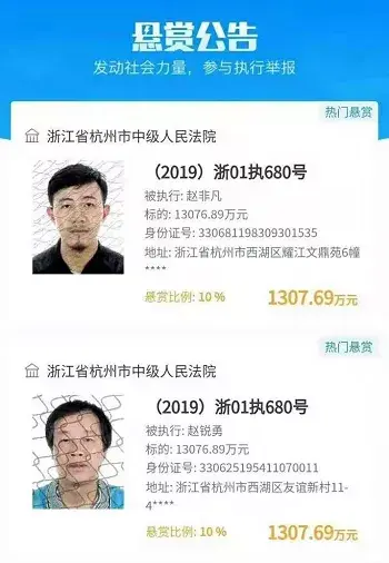 悬赏执行,是2019年杭州法院开始尝试的一种新的执行手段,赵锐勇父子一案是杭州中院试行悬赏执行的第一案。