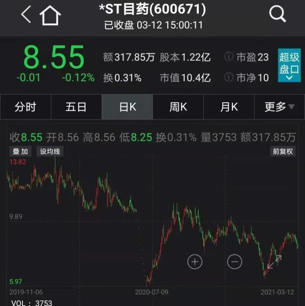 *ST目药公告,预计2020年年度实现归属于上市公司股东的净利润为-3400万元至-6800万元,与上年同期相比将减少8411万元到1.18亿元,同比下降167.85%到235.70%。截至3月12日收盘,公司市值为10亿元。
