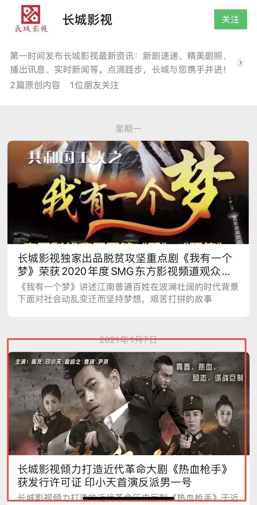 有意思的是,封面新闻记者还注意到,在如此泥潭下,长城影视的官方微信公众号仍在宣传新电视剧。