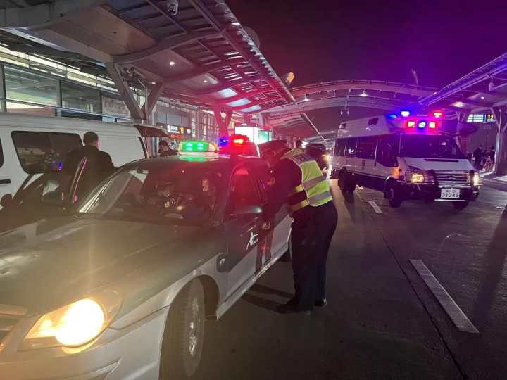 10月21日晚9点,机场大队和机场交警对在杭州机场出发层平台停靠的巡游出租车逐一开展检查。