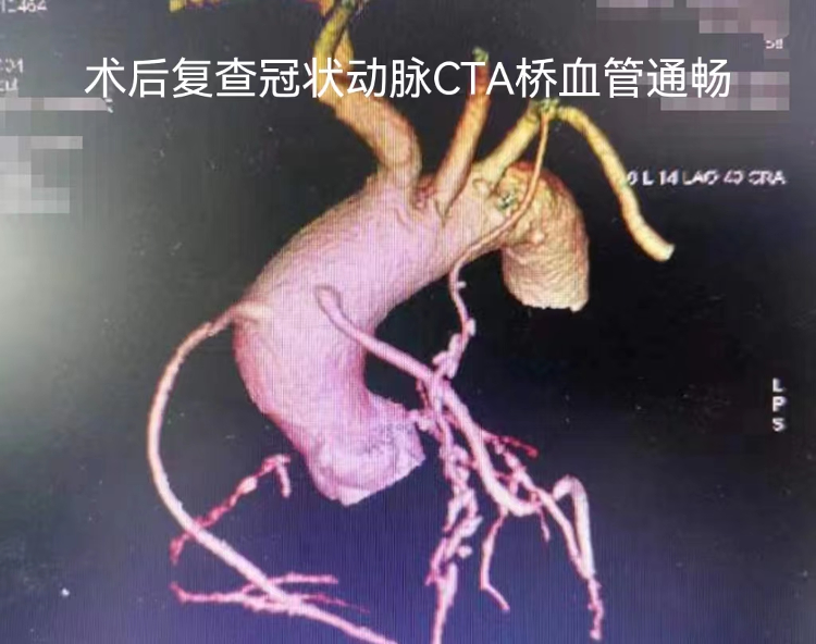 患者入院后,心脏大血管外科主任郑建伟带领团队人员完善术前病例讨论,认为患者手术指征明确,但心功能差,初步定于在IABP辅助非体外循环下行冠状动脉搭桥术,提高手术安全性,减少手术对其他器官的影响。与患者家属沟通取得同意后,开始手术。术中,提前经右侧股动脉植入球囊,运行辅助下顺利完成单乳内动脉-前降支冠状动脉搭桥术+主动脉-大隐静脉-回旋支(后降支)两根冠状动脉搭桥术,手术顺利,术后患者安返心外科监护室,血流动力学相对稳定,经心外科团队密切监护治疗,术后第1天患者顺利脱离呼吸机,第3天顺利撤出主动脉球囊,患者心功能逐渐提高,出院时EF上升至47.9%,取得了良好的治疗效果。