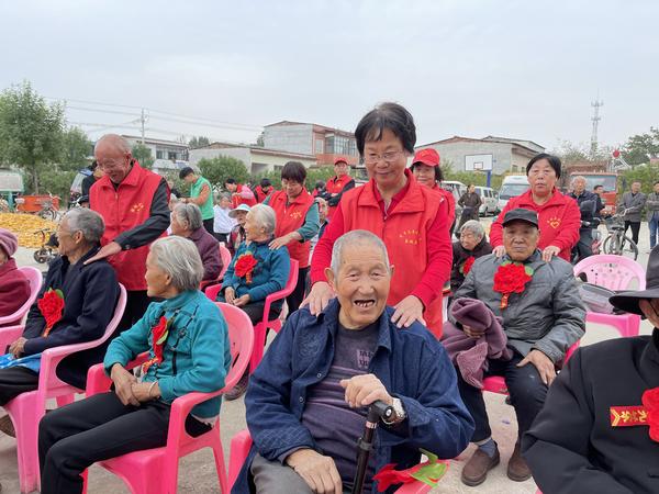 10月14日,襄城县关爱老人志愿者协会联合湛北乡七里店村委会来到襄城县七里店村乡村大舞台,开展以“我为群众办实——爱在重阳,情满夕阳”为主题的七里店村第二届重阳节感恩活动。