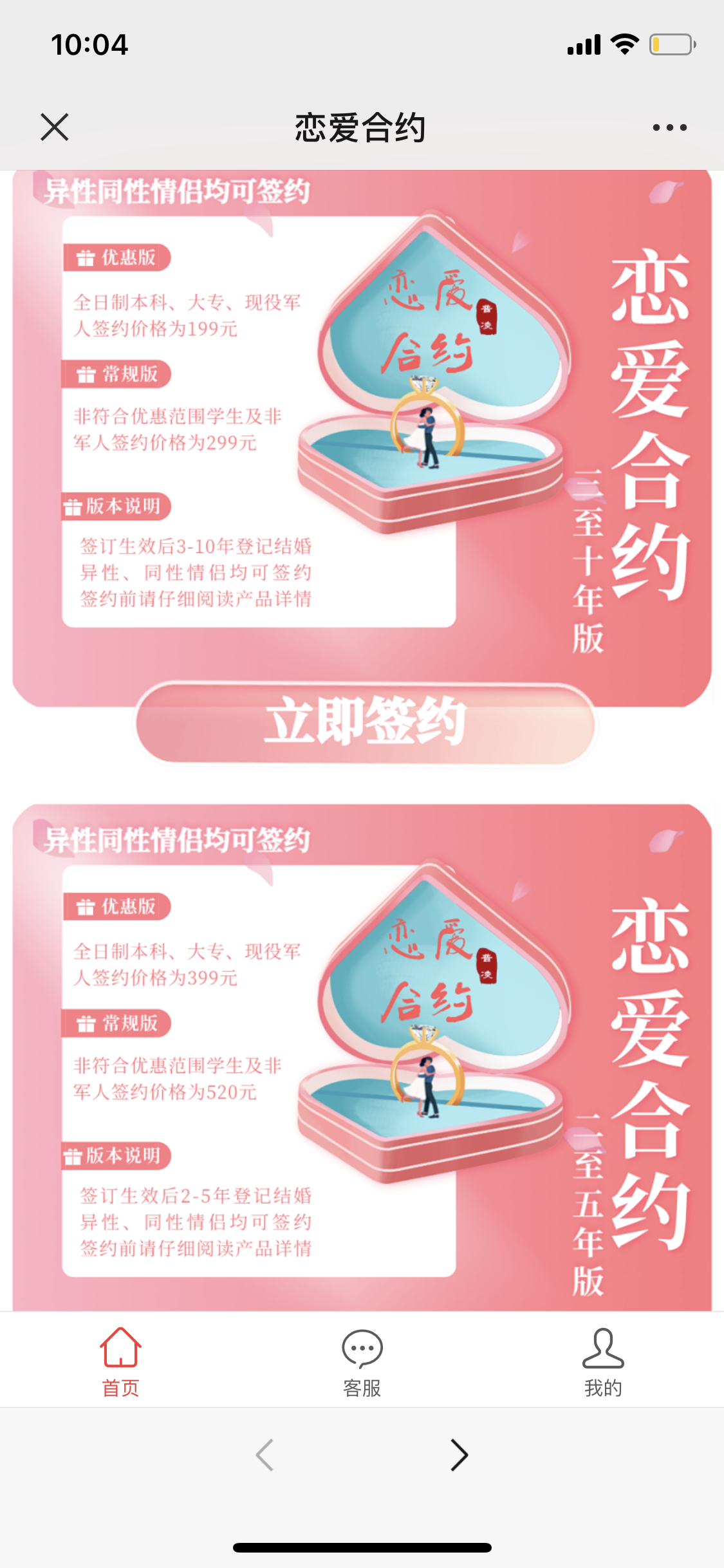 今年5月21日,22岁的王女士与谈了近5年恋爱的男友购买了普凌恋爱合约“学生军人优惠版”。“199元买了不吃亏,万一真结婚了能赚10000元,我觉得挺值。”王女士表示,她和男友谈论过结婚的话题,但结婚是两个家庭的事,现在还说不准,她目前处于“憧憬结婚”的状态。