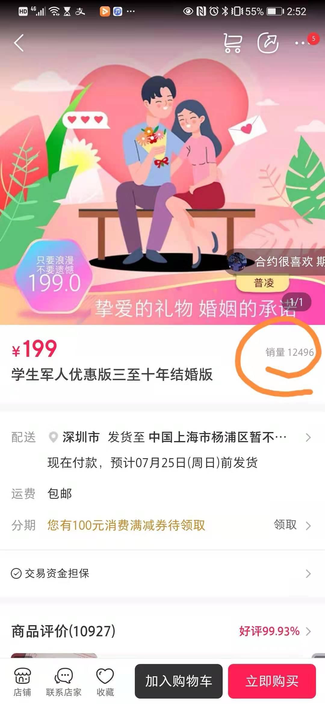 “普凌恋爱合约”的学生军人优惠版自称已售出12000多份。