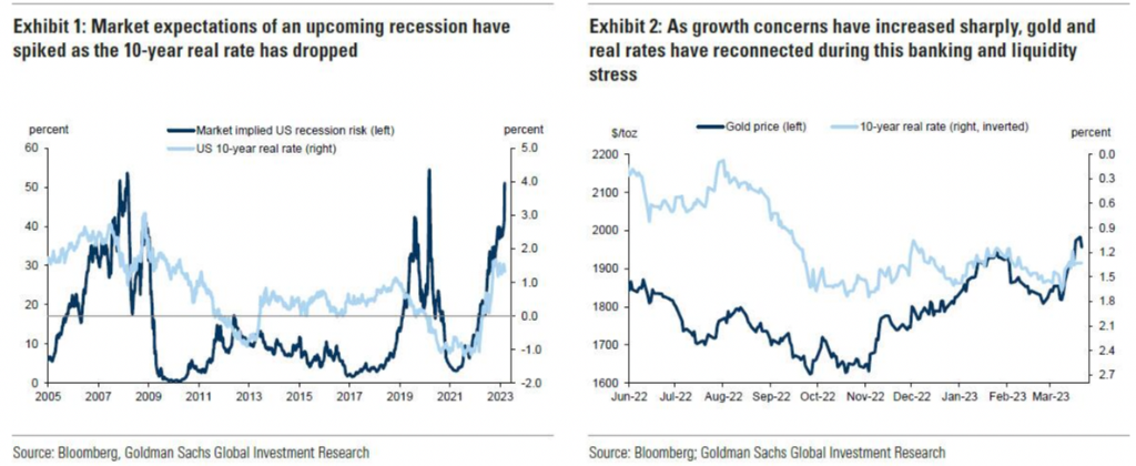 接着,随着人们对美国银行体系压力的担忧持续,以及政策制定者被迫干预以确保金融稳定先于价格稳定,黄金与实际利率、美元和更广泛的信贷风险之间的关系已经被重新调整。