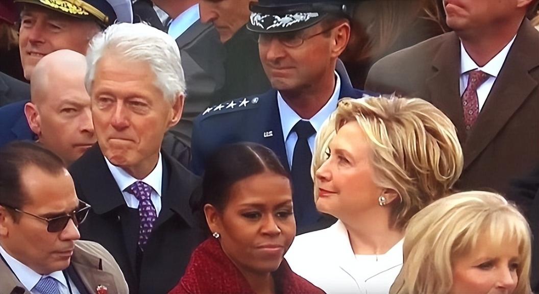 2017年,在特朗普的就职典礼上,美国前总统克林顿带着妻子希拉里一起出席了。