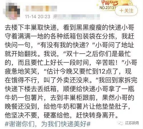 有网友说:“快递小哥一定是怕了,太累了,才甩手不干的,这几天看到小区里的小哥,半夜三更还在忙,真心不容易。”