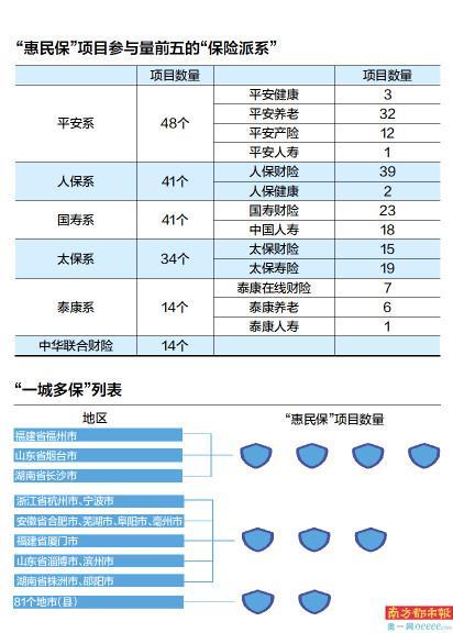 经南都记者统计,以参与量前三的保险派系为例,“平安系”参与48个惠民保项目,“国寿系”参与41个项目,“人保系”参与41项目。