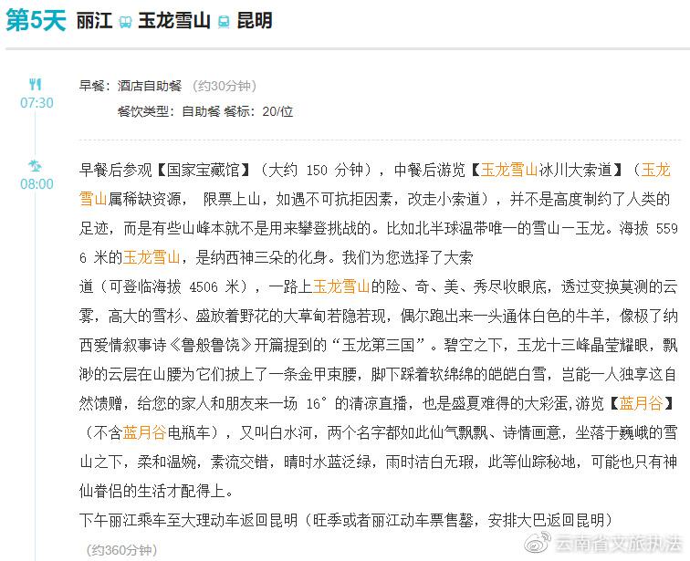 根据云南省《2021年旅行社云南旅游产品参考成本消费提示》,