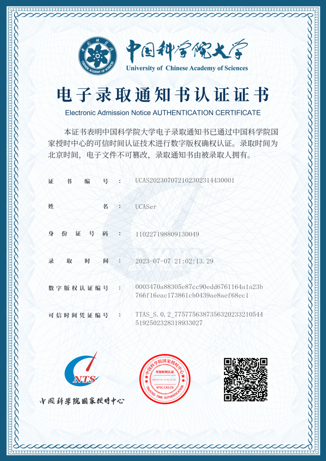这份录取通知书