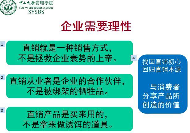 监管对于直销企业而言并不是坏事,对于大部分以产品为导向的企业是经得起这种监管的,反而是会为我们的消费者和企业提供一个更好的市场环境。