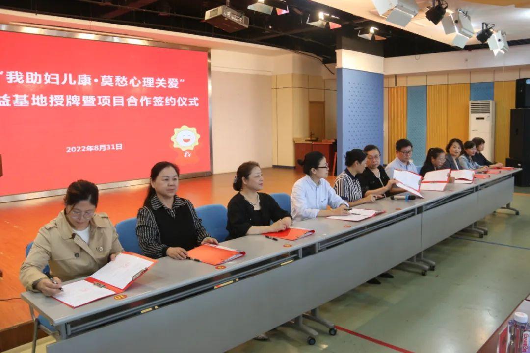 2022年8月31日下午,“我助妇儿康·莫愁心理关爱”公益基地授牌暨项目合作签约仪式在南京举行。省妇儿基金会理事长赵鹏,省妇联副主席席玉峰,省妇儿基金会副理事长兼秘书长顾敏、副理事长宋晓辉,东南大学应用心理研究所所长、省莫愁心理公益联盟理事长马向真,省妇联权益部部长解黎、权益部二级调研员骆捷,南京医科大学心理健康教育与研究中心主任、省莫愁心理公益联盟秘书长王志琳以及省妇联、省妇儿基金会有关同志,30家项目合作方代表近50人参加活动。