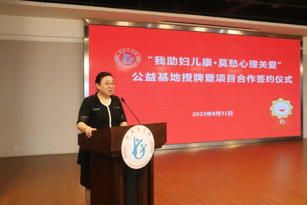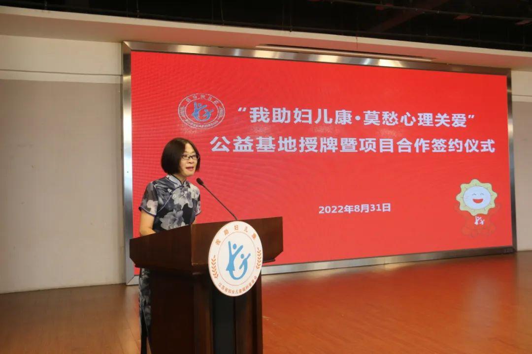 解黎宣读首批“我助妇儿康·莫愁心理关爱”公益基地名单。