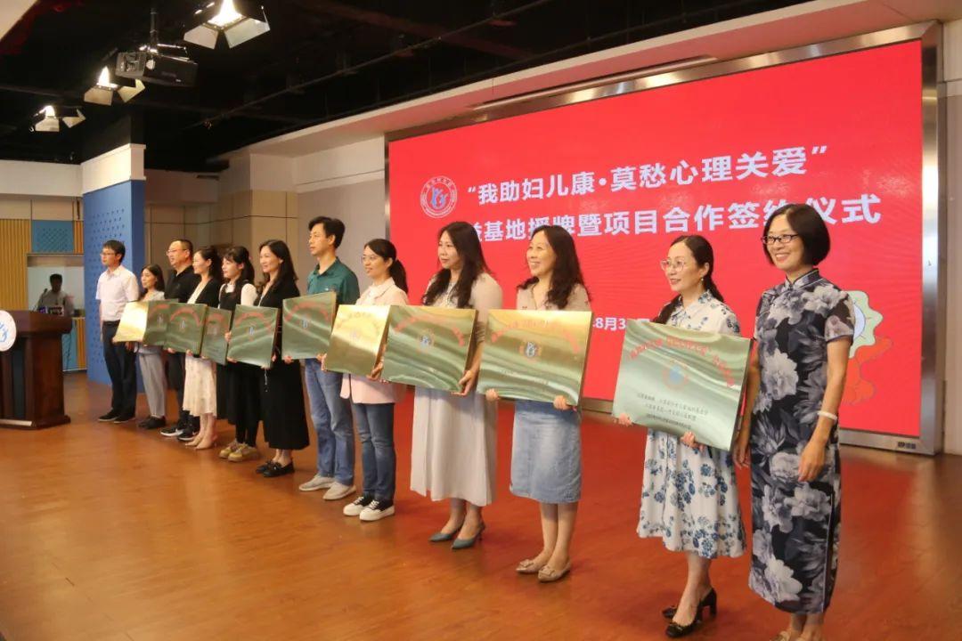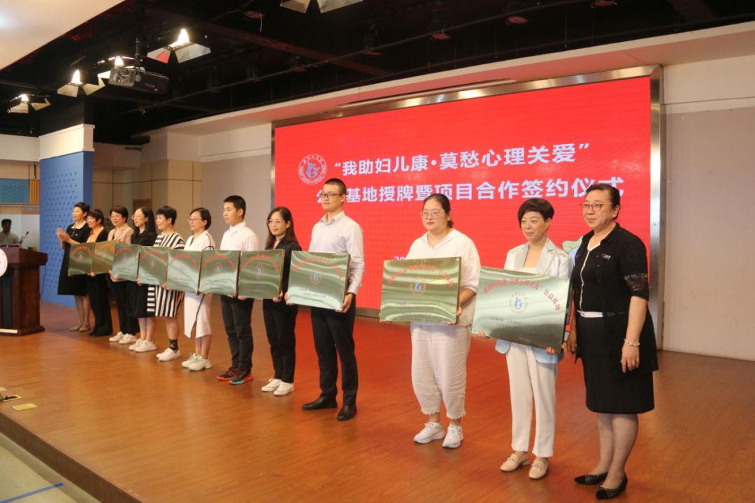赵鹏、席玉峰、顾敏、宋晓辉、马向真、王志琳分别为30家“我助妇儿康·莫愁心理关爱”公益基地授牌。