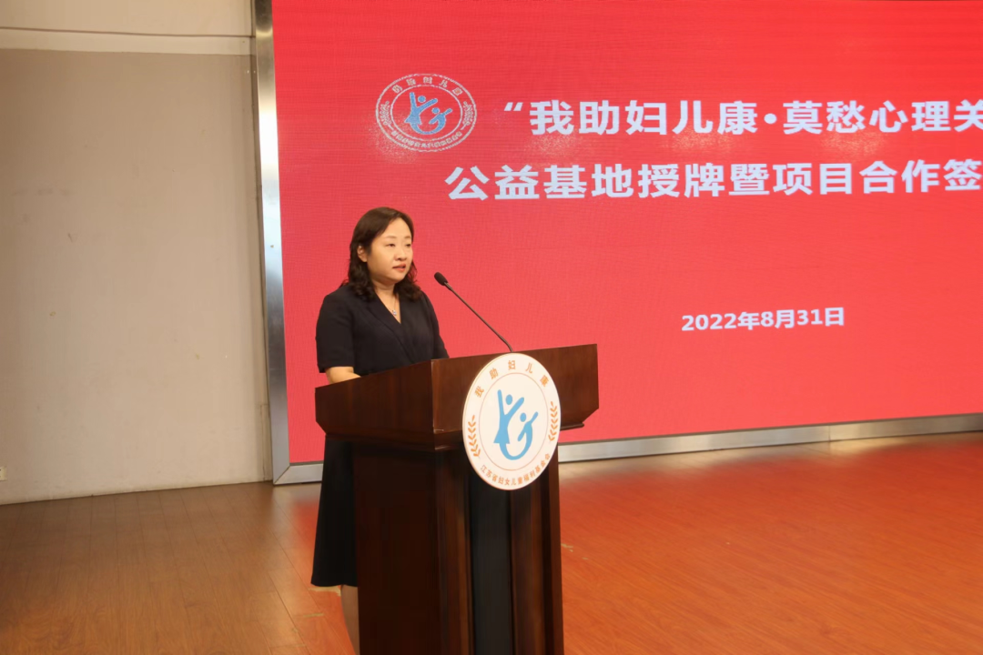 宋晓辉对“我助妇儿康·莫愁心理关爱工程”项目进行发布。