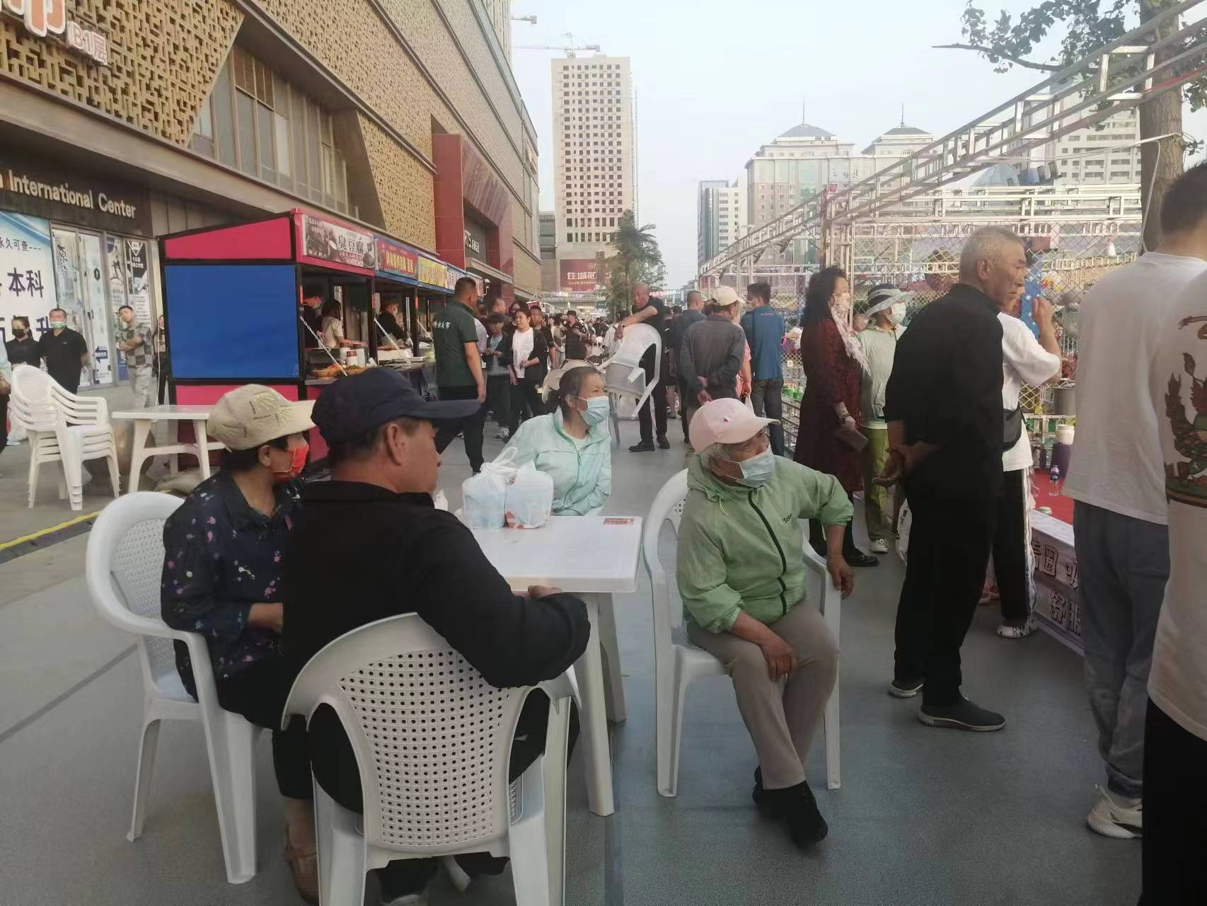 2023年5月底的一个下午,抚顺市中心万达广场的门口正在举办一场消费节,几十米长新搭建的一条小吃街上挤满了人。