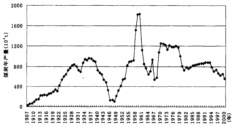 经过半个多世纪的开采,因资源枯竭和环境问题,抚顺市煤炭产量从1970年左右开始下滑,某些年份偶有起伏。但从进入1990年,下滑趋势明显,到2000年,年煤炭产量仅仅为历史最高水平的30%。