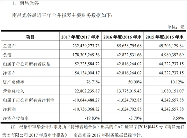 上市公司公告显示,2016年和2017年其净利润分别亏损162.47万元、1073.61万元。从营收规模看,南昌光谷2017年实现营收为2280万元,同时期长方集团实现营收为17.50亿元。长方集团的营收是南昌光谷的76倍。