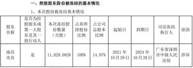因陷入被邓氏兄弟追债的官司中,南昌光谷前两次交割获得合计占长方集团总股份比例的14.97%股份,于2021年10月29日被广东省深圳市中级人民法院冻结。