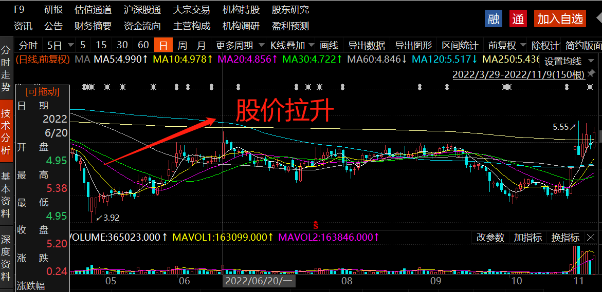2022年5月,定增计划又现“眉目”,中再资环股价由4月底低点3.93元/股拉回5元/股以上均价,并于6月20日左右走出5.39元/股的相对高点,股价阶段性涨幅约37%。