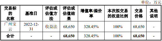 根据北京卓信大华资产评估有限公司出具的评估报告,以2022年12月31日为评估基准日,广州宝云账面净资产1.60亿元。若以资产基础法评估,广州宝云评估价值2.20亿元,增持率37.35%;以收益法评估,评估价值6.87亿元,增值5.26亿元,增值率328.45%。