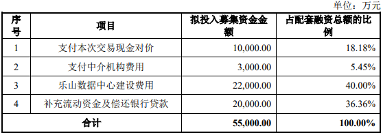 这笔交易也安排了配套募资5.5亿元。其中1亿元于用此次交易现金对价,连3000万元的中介机构费用也来自定增,另有2亿元用于补充流动资金和偿还银行贷款。只有2.2亿元用于主业投入,建设乐山数据中心。