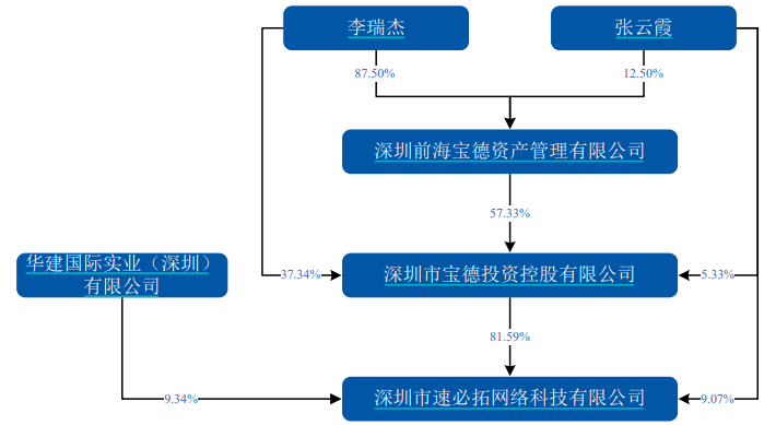 速必拓成立于2005年,其股权常年被李瑞杰、张云霞夫妇直接或间接100%持有。其中两度引入新股东,包括红土基金、深创投等知名创投均曾参股。然而每次不到半年时间,新股东便退出,股份又悉数回归实控人夫妇手中。