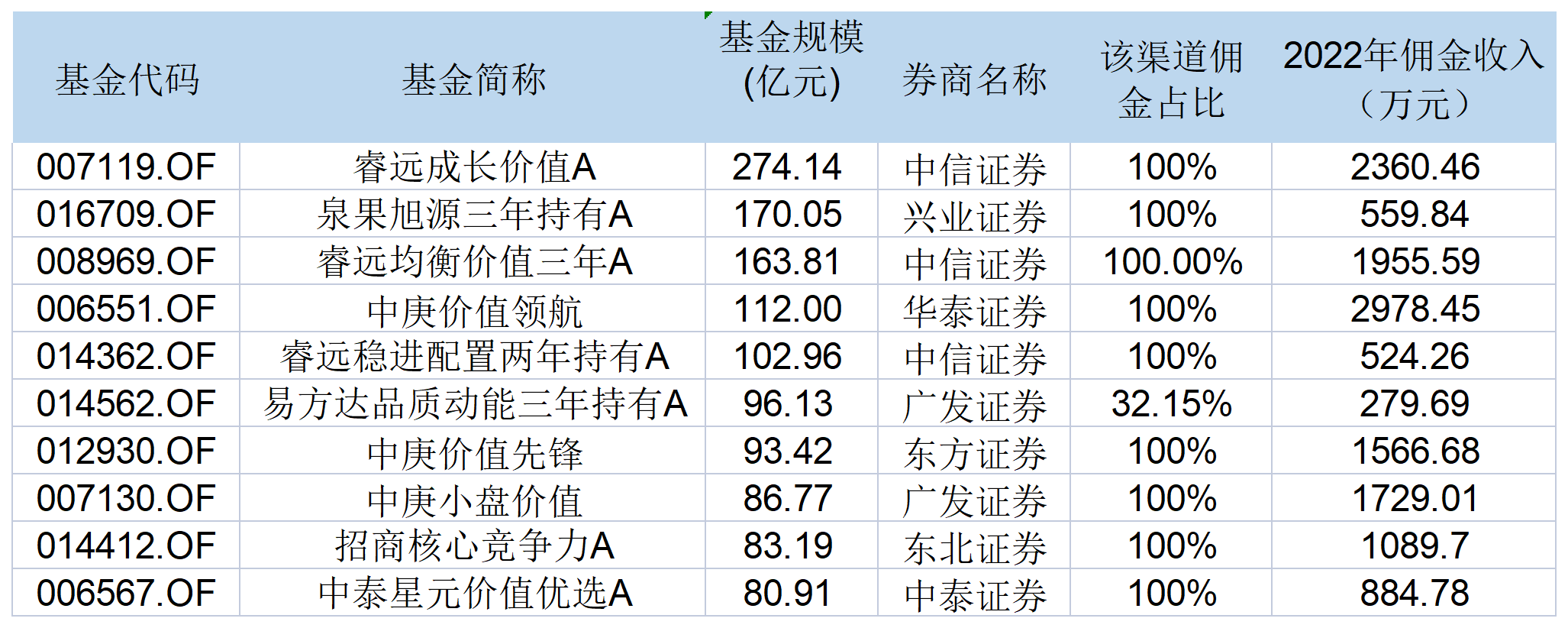 同样,券商资管的产品也首选了自家的交易席位。数据显示,截至今年一季度末,中泰星元价值优选规模为80.91亿元,中泰证券为唯一的交易渠道,佣金收入为基金佣金支出的100%。