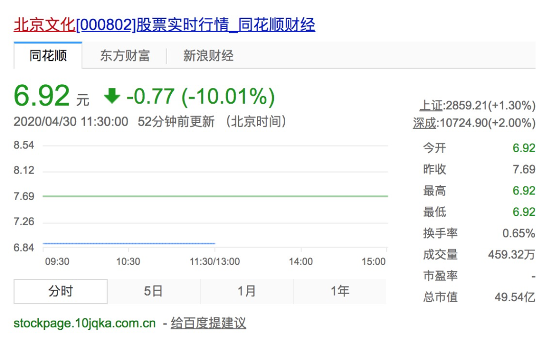 好剧邦注意到,举报事发后,北京文化公司股票30日开盘即跌停!