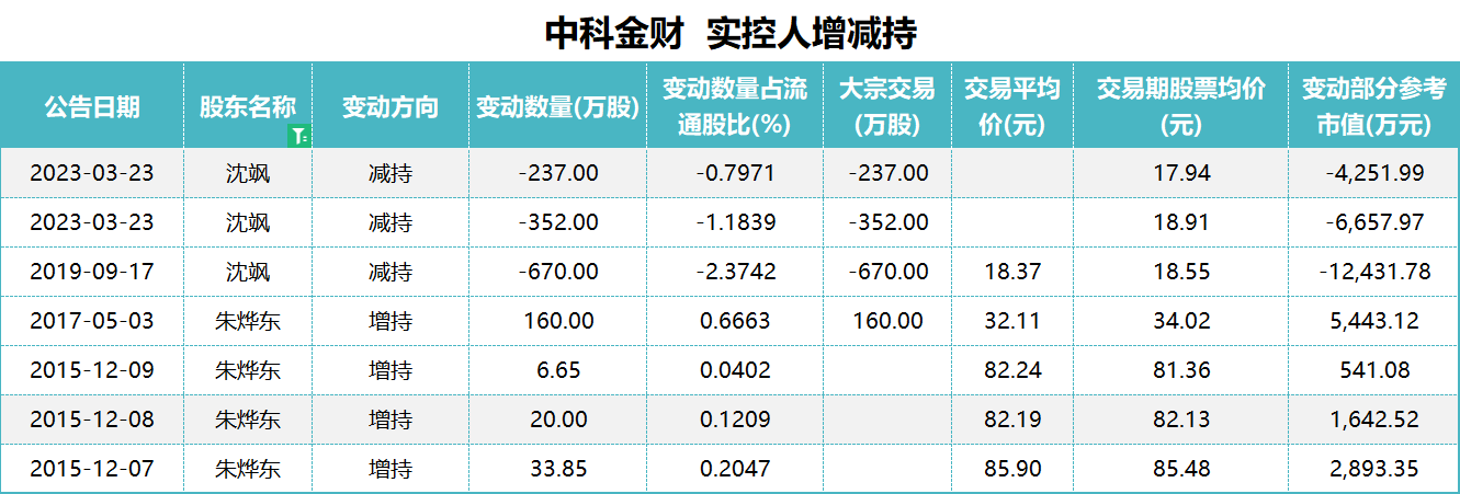 最近,中科金财实控人沈飒将6.74%公司股份转出,方式是大宗交易和协议转让