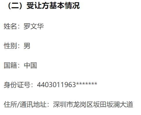 中科金财公告显示,罗文华身份证前几位是440301963,深圳市的身份证号码开头数字是4403,“44”表示广东省,“03”表示深圳市。通信地址为深圳市龙岗区坂田坂澜大道。