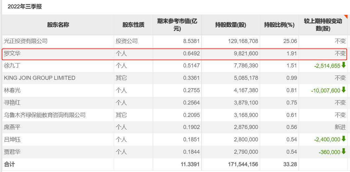 天眼查APP显示,罗文华也是上市公司光正眼科(002524.SZ)的第二大股东,截至2022年9月末持有该公司股份1.91%。