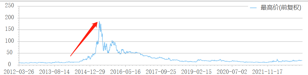 在互联网金融蓬勃发展的头几年,中科金财股价一路走高,2015年一度飙至185.54元/股(前复权),市值超540亿元。
