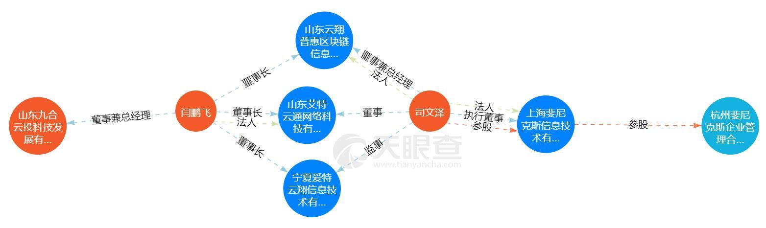 值得一提的是,闫鹏飞和司文泽两人同时在山东艾特云通网络科技有限公司(下称“山东艾特云通”)、宁夏爱特云翔信息技术有限公司(下称“宁夏爱特云翔”)、山东云翔普惠区块链信息科技有限公司(下称“山东云翔”)三家公司分别担任董事长、董事、法人、总经理、监事等职务,可谓关系密切。不过,山东艾特云通和山东云翔现已注销。
