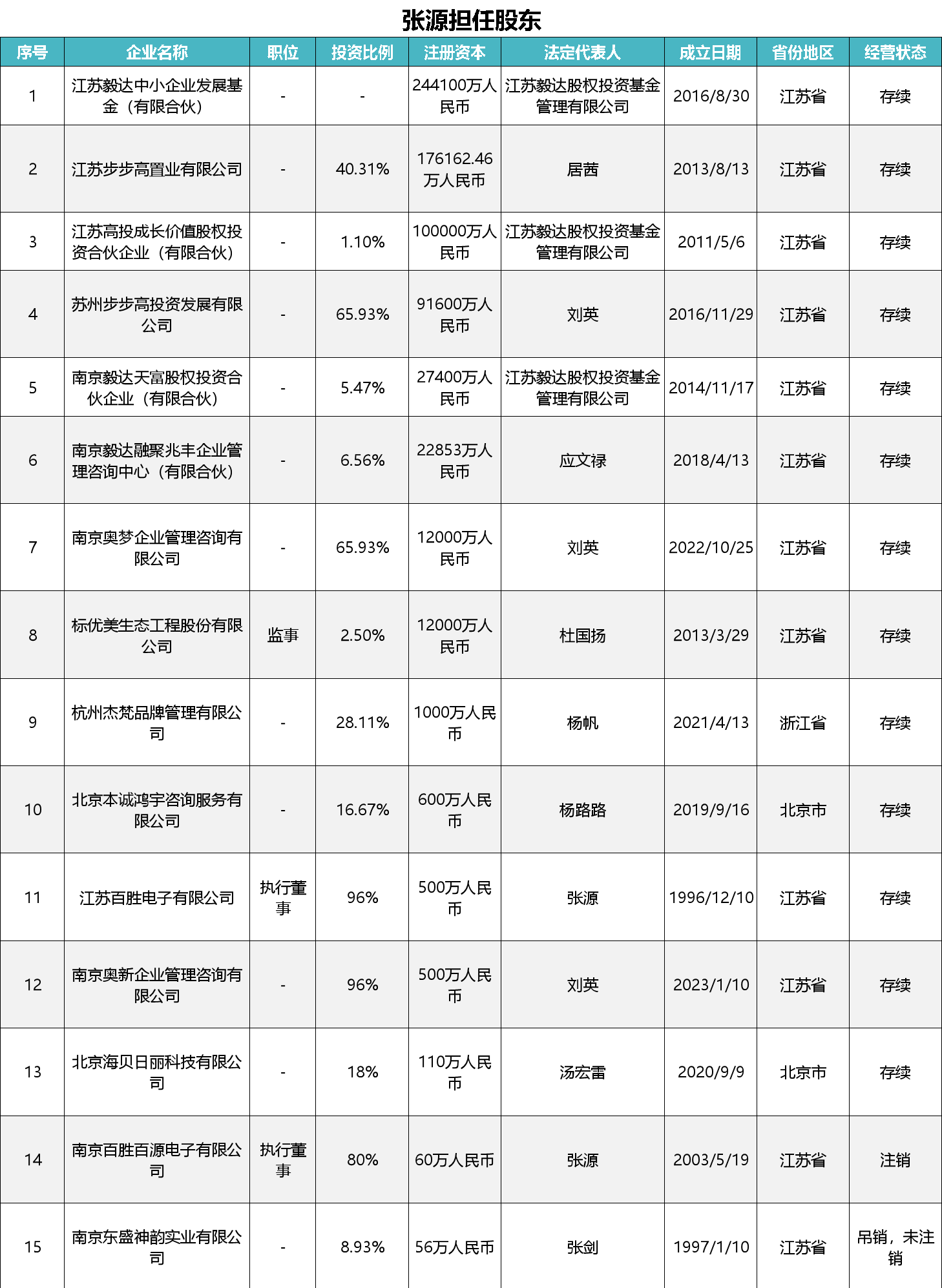 天眼查信息显示,张源擅长投资,参股了毅达系旗下的几家私募投资资金,