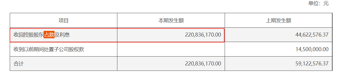 。因为现在控股股东已经不欠上市公司的资金了,在2022年末把钱还上了。”2022年年报显示,控股股东占用的2.2亿元资金已经收回。