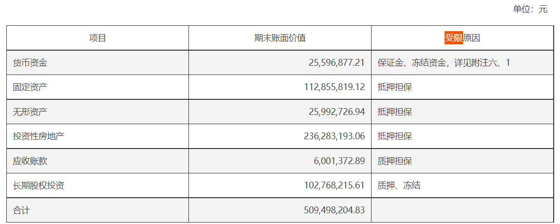 不仅账户受限,公司超三成的资产也受限。截至2022年末公司总资产达14.8亿元,但有5.1亿元资产受限,占比约34%。