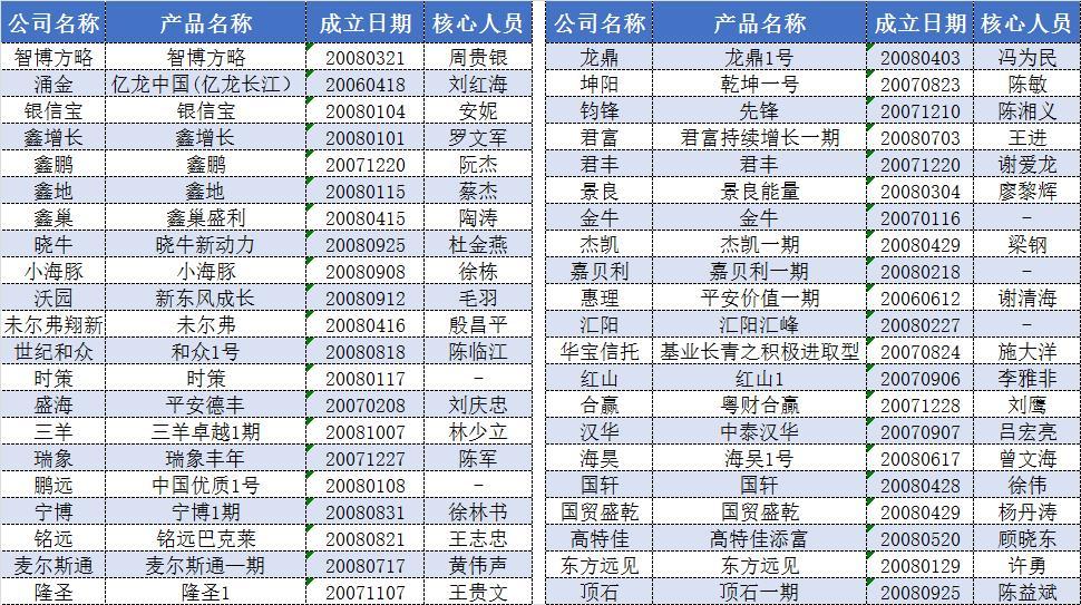 界面新闻统计发现,第一批私募中核心人物有公募背景的许多私募公司如今也都已经消失不见,比如曾经就职于泰信基金、华夏基金的林少立创办的三羊资产,曾先后就职于博时基金、宝盈基金的刘红海掌舵的涌金投资等。