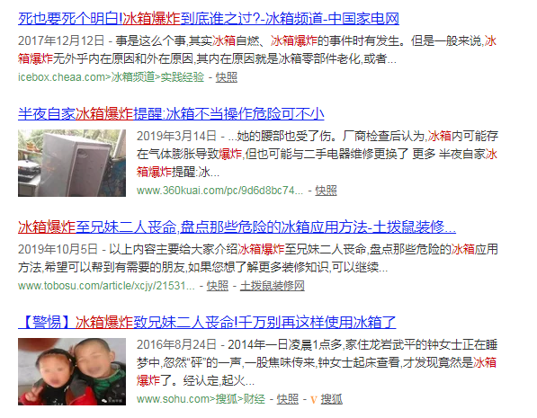 冰箱内存放酒精、汽油等易燃易爆物品时,由于冰箱内体积小,容易形成爆炸性混合物,开关时打出电火花,导致爆炸起火。同时,酒精等挥发出来的可燃蒸汽就有可能被引爆,后果非常严重!